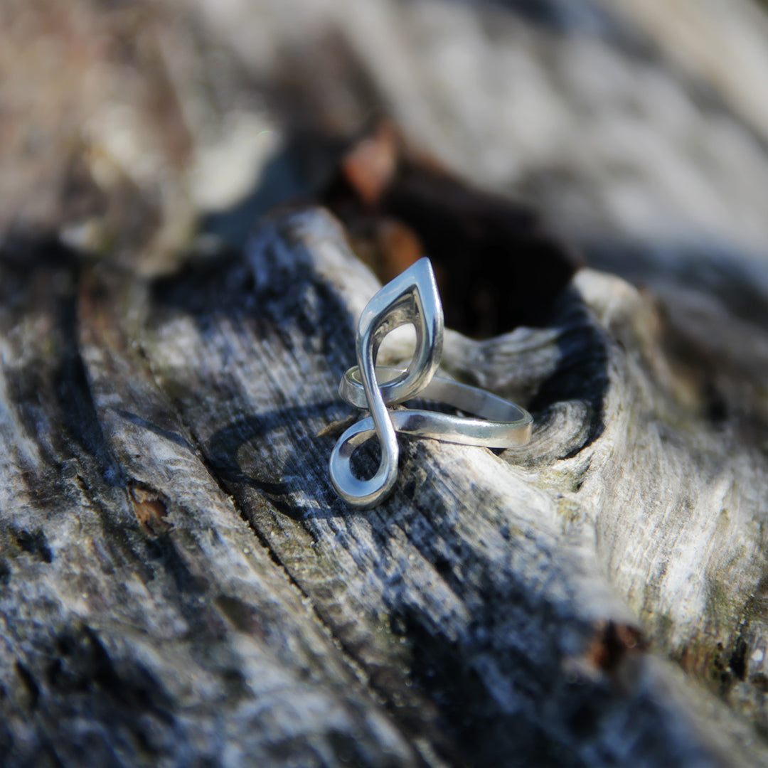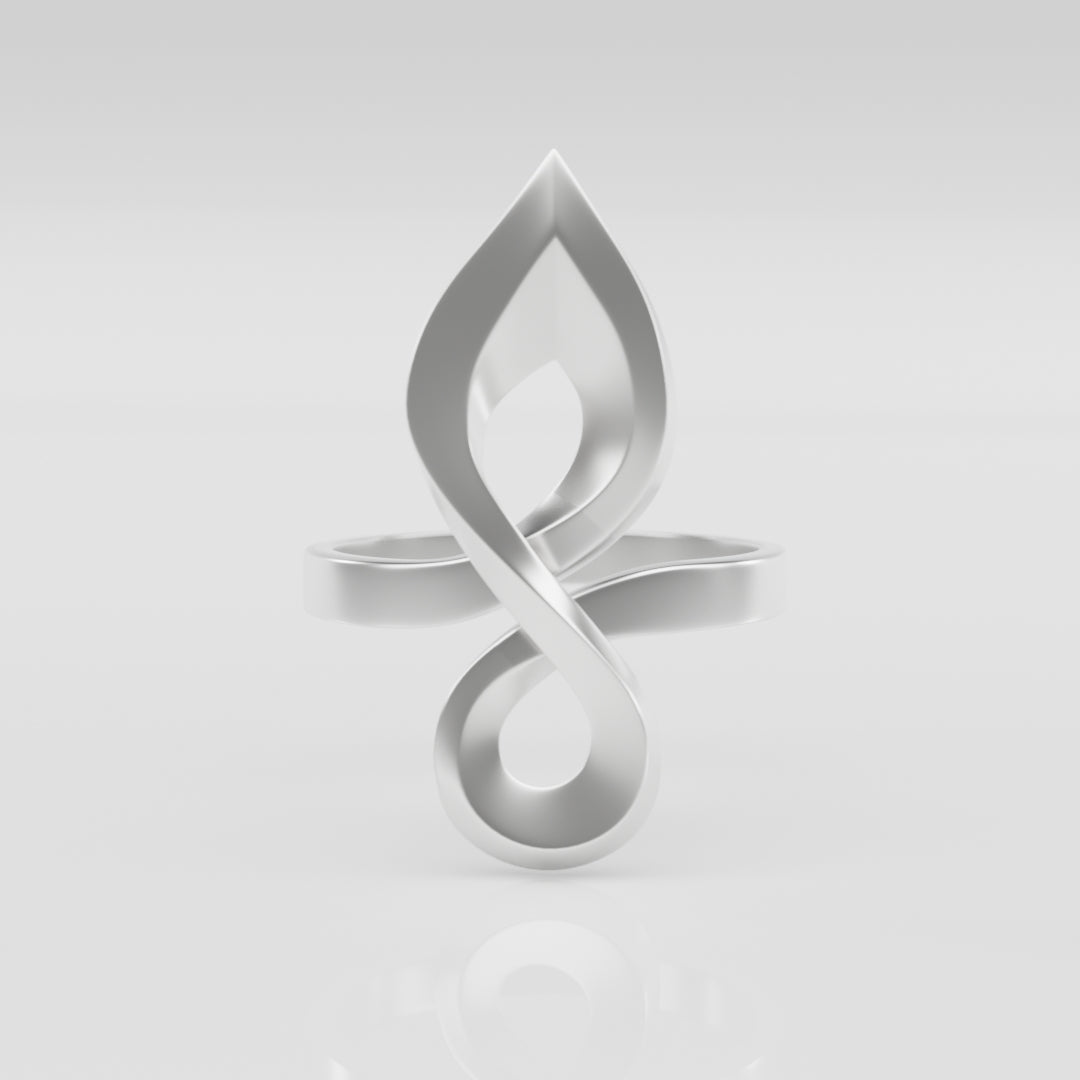 The geometry of the ring is both simple and profound, with its single, flowing line that loops back on itself, creating a sense of continuous motion and energy, much like the eternal nature of fire. This provides a visually captivating look while ensuring a comfortable fit, hugging your finger with grace.